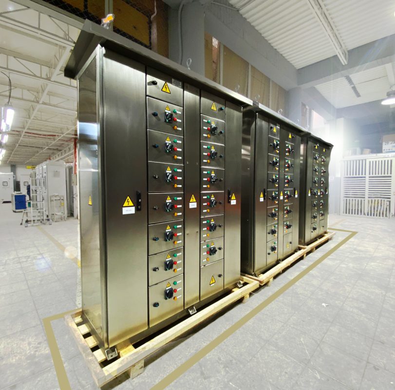 Nuestro CDP está construido en acero inoxidable AISI – SAE 304 ,con un acabado con brillo satinado, cumple con grado de protección basado en la Nema 250 tipo 4X, con el objetivo de garantizar una protección adicional frente a la corrosión, Seguido a esto, es un sistema de segregación 3B según la IEC 61439-1 en el cual tenemos todas las unidades funcionales independientes con mandos extendidos para poder hacer un bloqueo de cada una de las puertas; contamos con un ducto de salida de cables el cual cuenta con protección acrílica que impiden cualquier contacto accidental.
